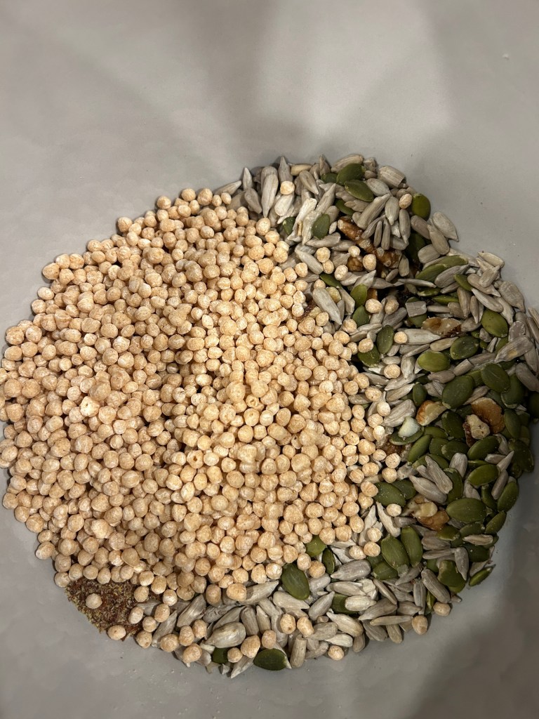 I wanted a variety of crunchy aspects for this wholesome snack. I viewed various recipes to get an idea on measurements and baking times. When I do this, I hardly ever write down exactly what I used, but this time I tried my best in writing it all down.