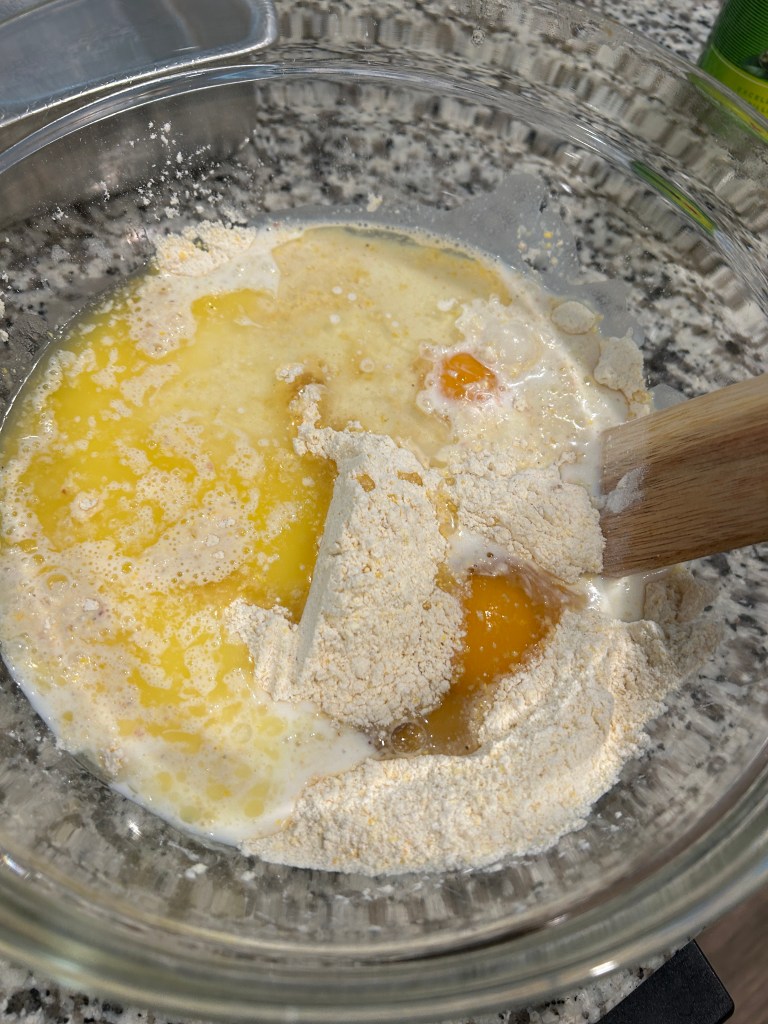 Mixing the ingredients for the cornbread using this handy tool.