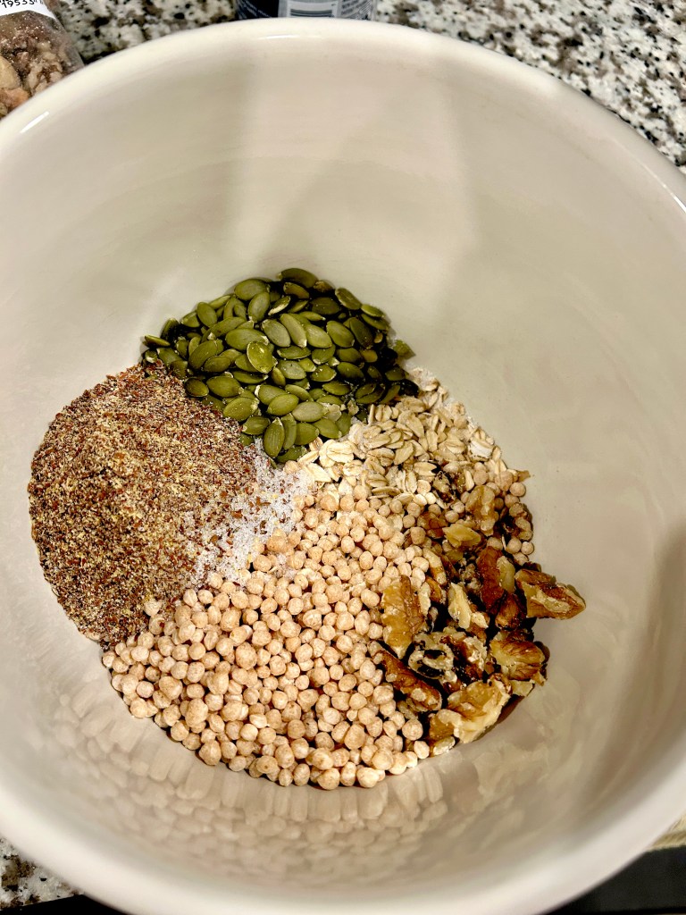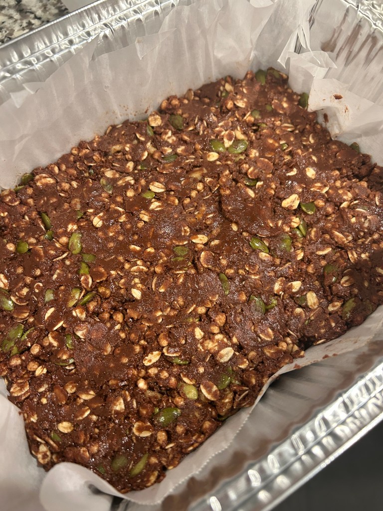 - Magnesium Bars: Magnesium is a mineral highly needed during the postpartum period. I wasn’t too familiar with this until postpartum and I prepared nutritionally prior to becoming pregnant. Magnesium is the fourth most abundant mineral in the human body, playing a critical role in various bodily functions, including muscle function, nerve function, blood pressure regulation, and bone health. Adequate magnesium levels can help mothers cope with the physical and emotional demands of postpartum recovery. It plays a role in regulating mood, reducing anxiety, and promoting restful sleep, which can be particularly beneficial during the challenging early days of motherhood. Throughout postpartum, I was struggling with being able to relax enough to sleep at night. I realized I needed to up my intake of magnesium (or start incorporating it more in my diet). Kale, pumpkin seeds, quinoa, and black beans have been my go tos. These bars were a tasty treat!