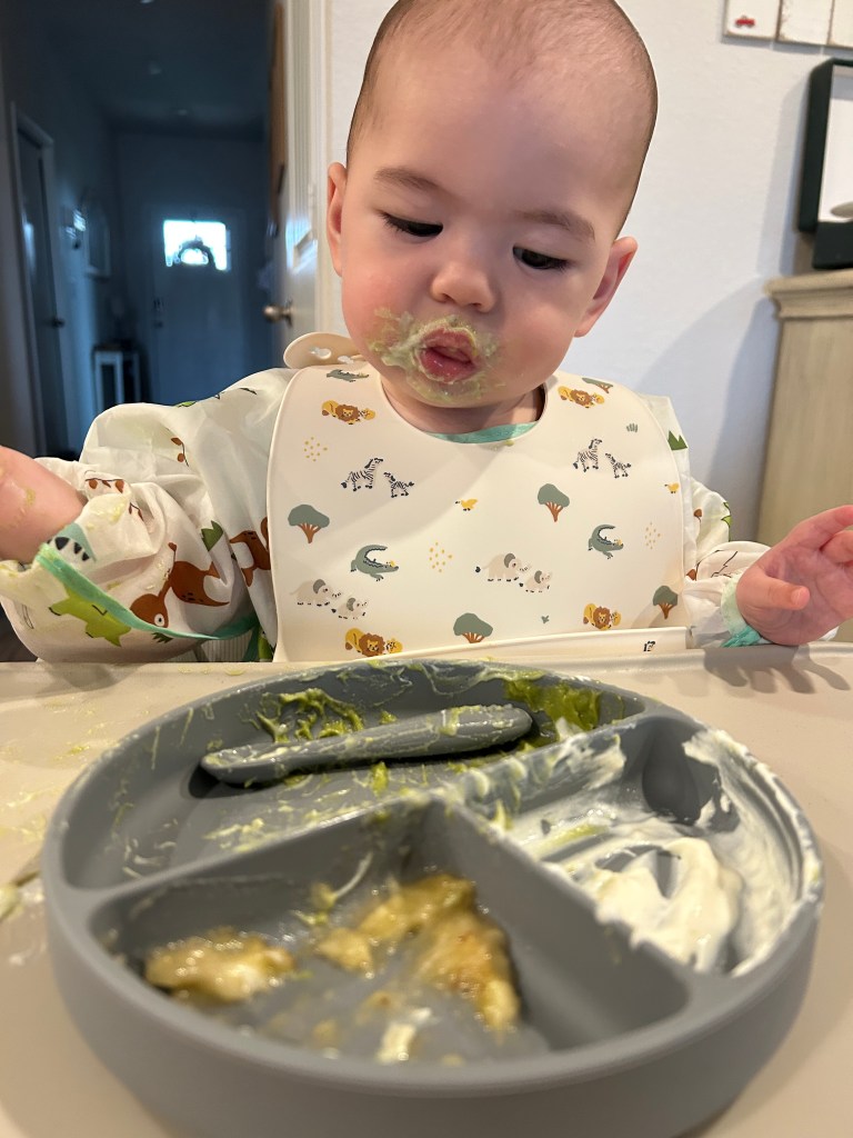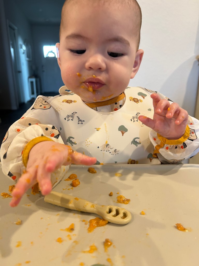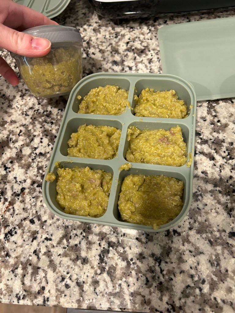- Baby Food: With an 8 month old, I’ve been making purees. He’s getting used to new textures and flavors. These silicone cubes have been my favorite for storing and prepping his solids. Easy to pop out and heat for his meal. I use these fruit feeders for just fruit and an on the go snack for him in the stroller. He loves banana and sweet potatoes.